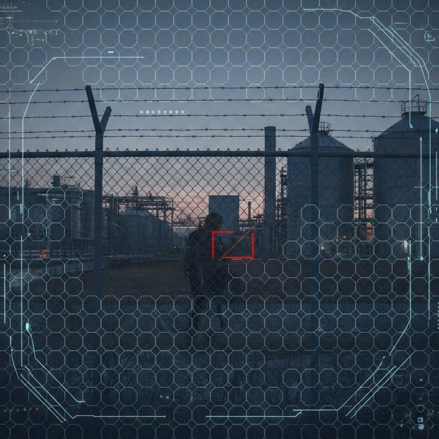 At night, an intruder climbs over the fence and enters the restricted zone.
